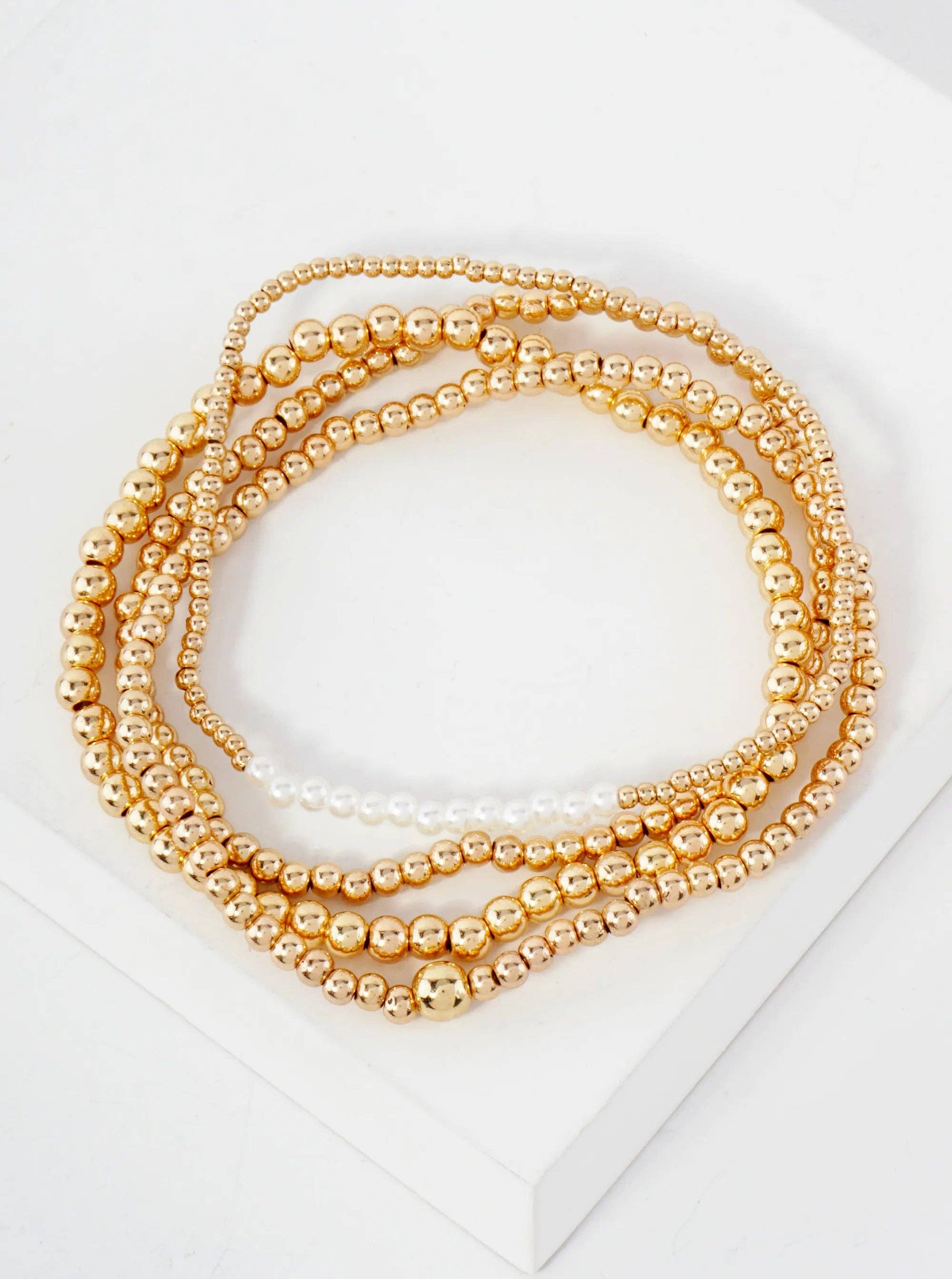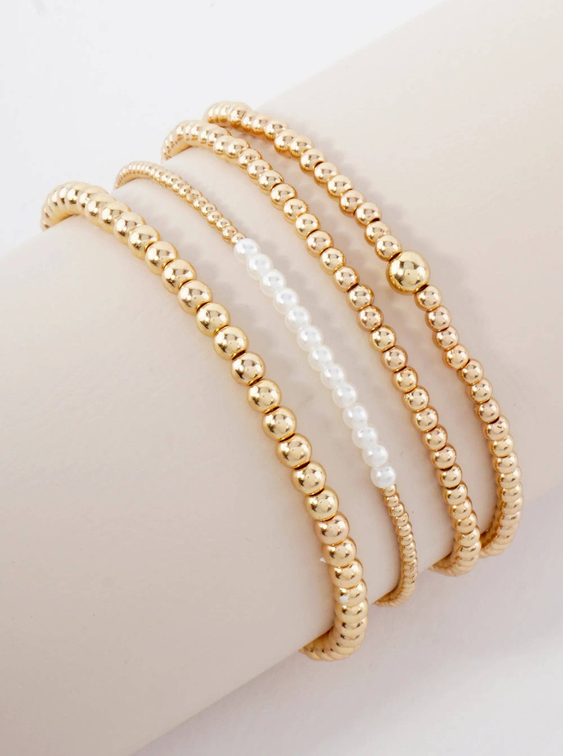 4PC-Set Metallic Beads Pearls Stackable Stretch Bracelets