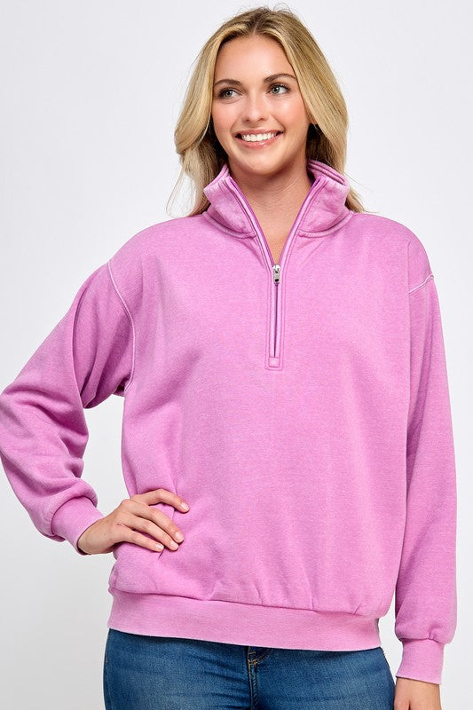Burn Out Fleece Half Zip * Cozy Brushed Fleece * Long Sleeve Banded Cuff & Hem * Side pockets * HPS 24" - Pre-Washed for a no-shrink true fit.