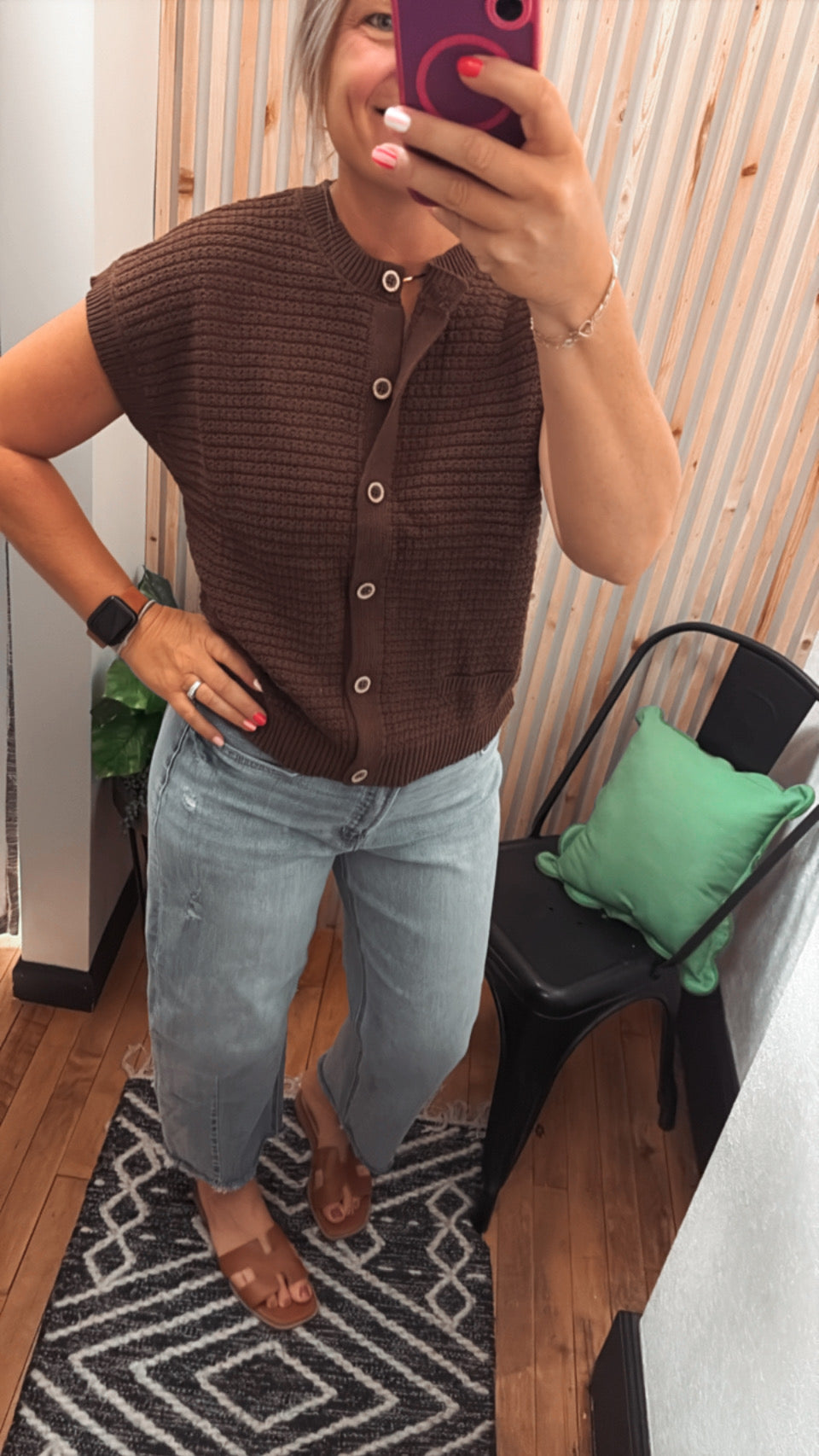 Button Down Short Sleeve Knit Cardigan Vest Top