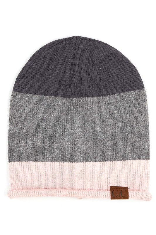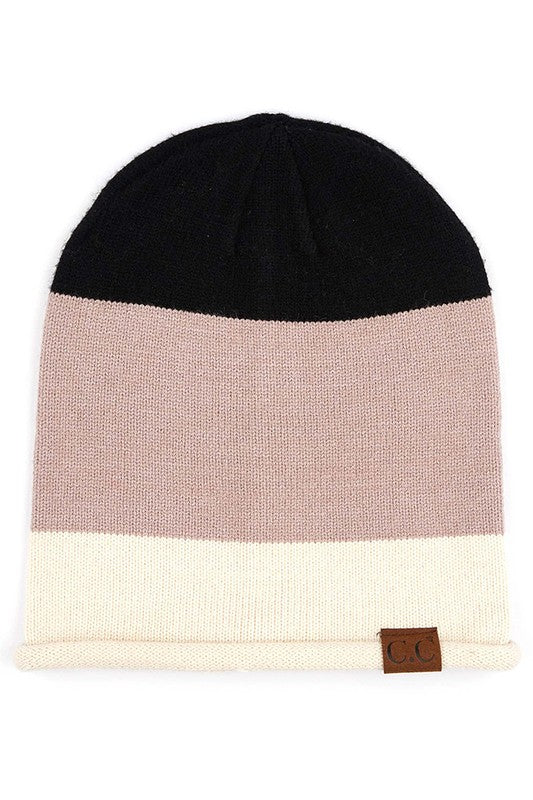 C.C ColorBlock Rolled Cuff Slouchy Beanie 50% Viscose 30% Polyester 20% Nylon