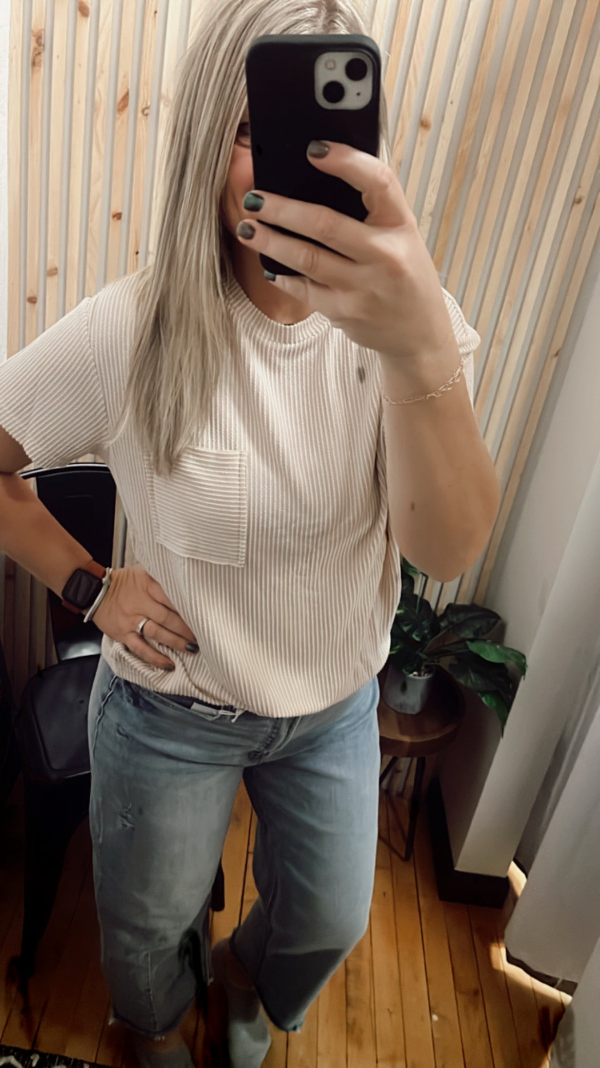 It’s relaxed fit with a crew neck, drop shoulder and tunic length