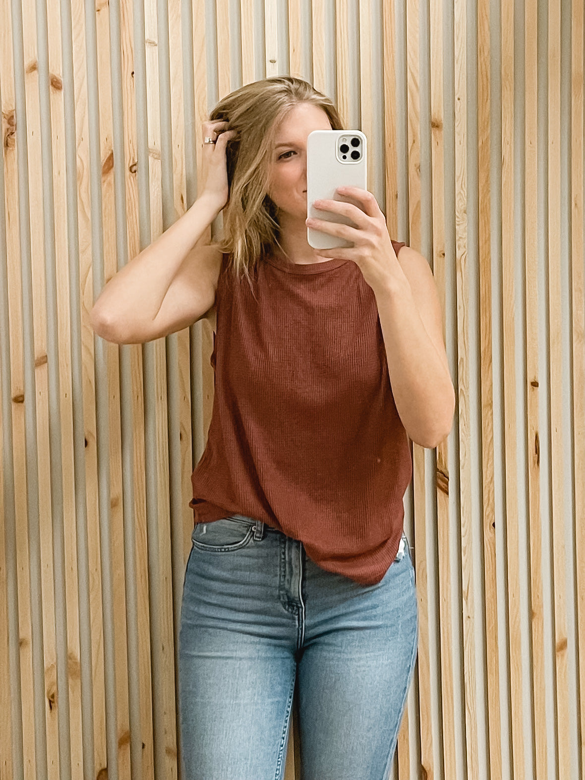 Crew Neck Waffle Tank Top