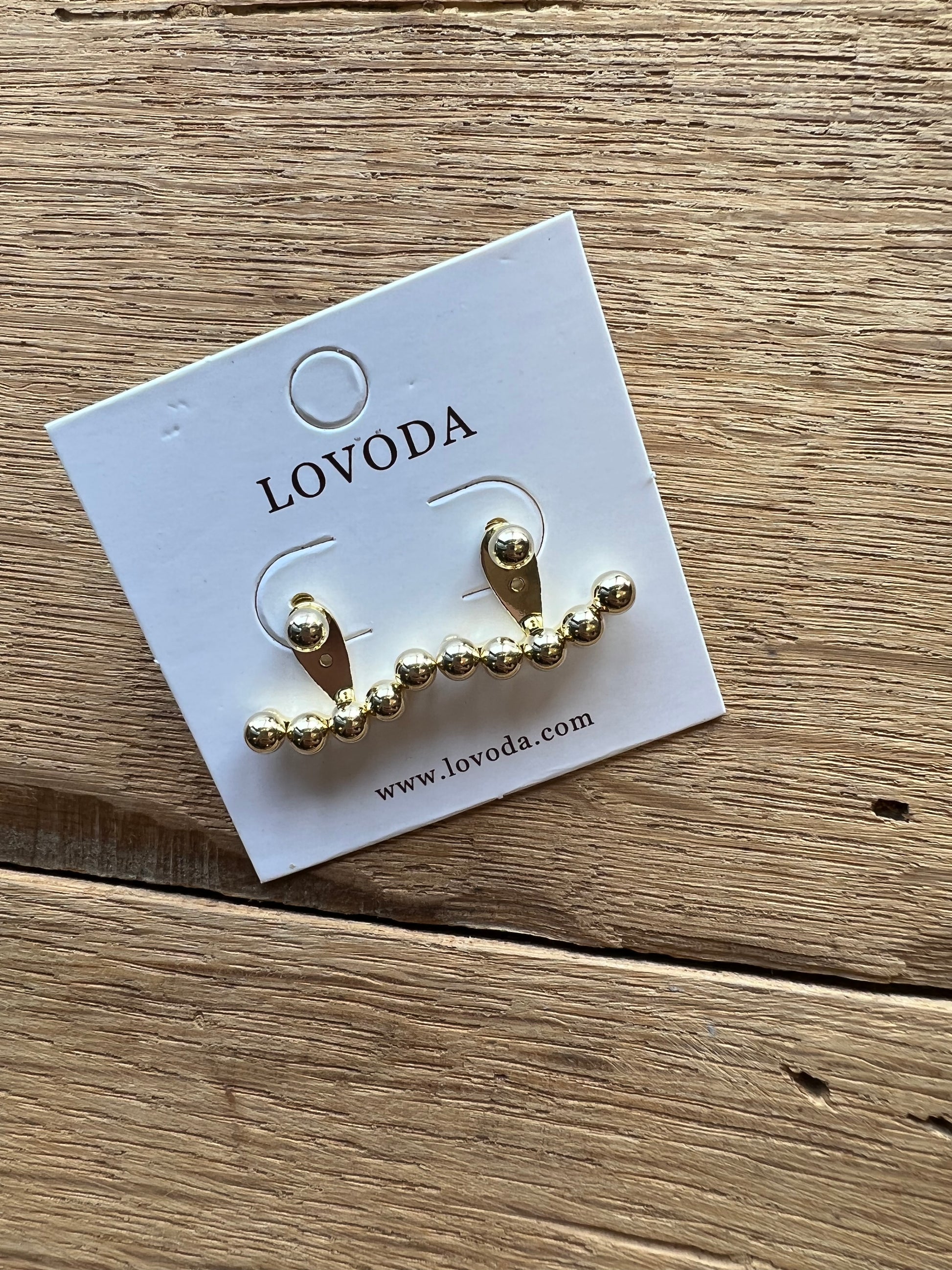 Gold Ball stud earrings with an ear jacket with 5 ball bases.