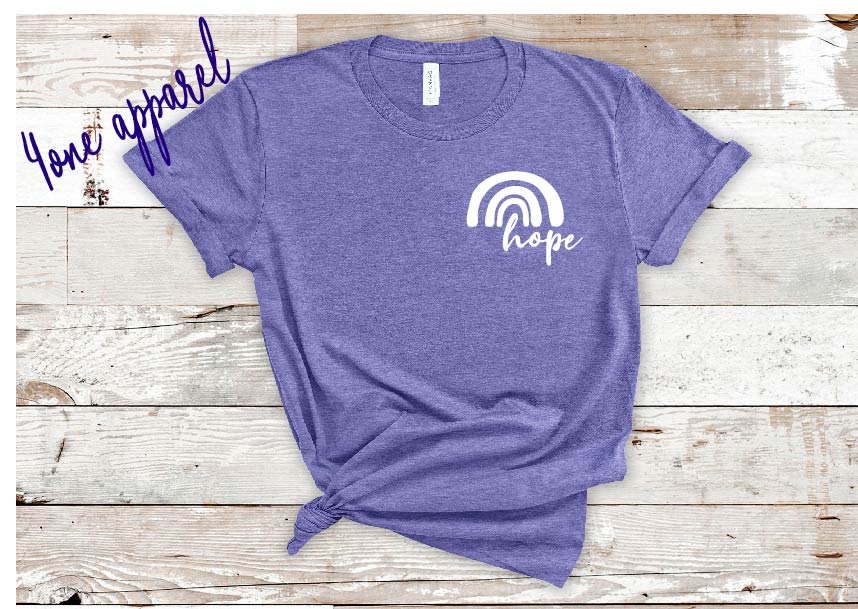 Hope rainbow tee is a great message with what we are currently facing-there is always hope!! Purple/Blue in color
