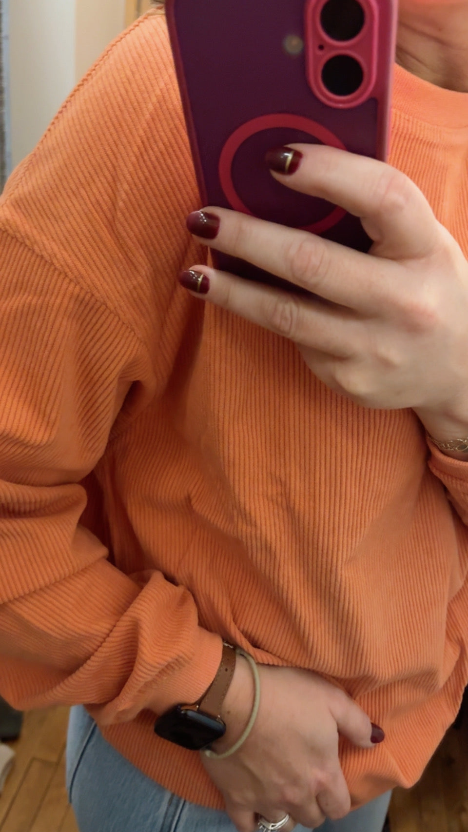 This sweatshirt makes it easy to rock your favorite Dolly song all year 'round * The poppy orange corded fabric paired with blush pink wording is our favorite color combo * Pair this cord with leggings for a comfy fit or dress it up with boyfriend jeans and your fave cowboy boots * It's suitable and fashionable for all body shapes