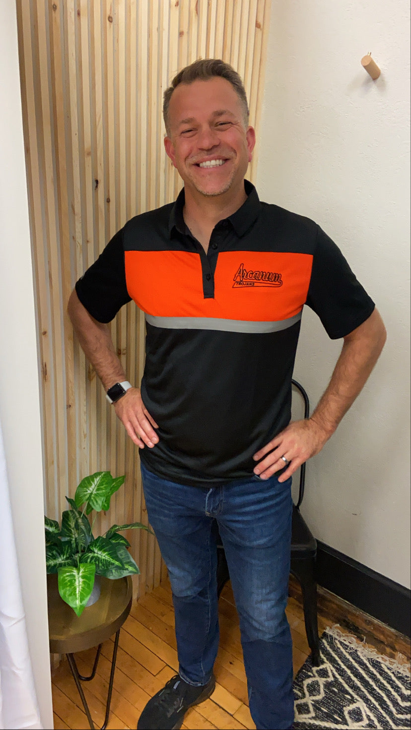 Black with Orange and Silver Trim with Arcanum Trojans Left Chest Embroidery