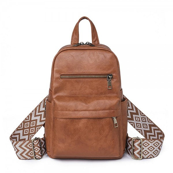 Mini Leather Back Pack Purse With Geometric Multi Colored Straps