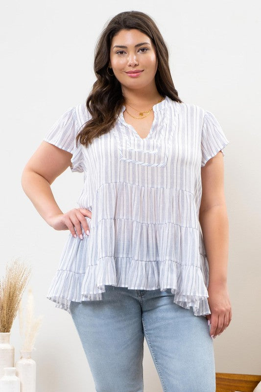 Plus Striped Tiered Top