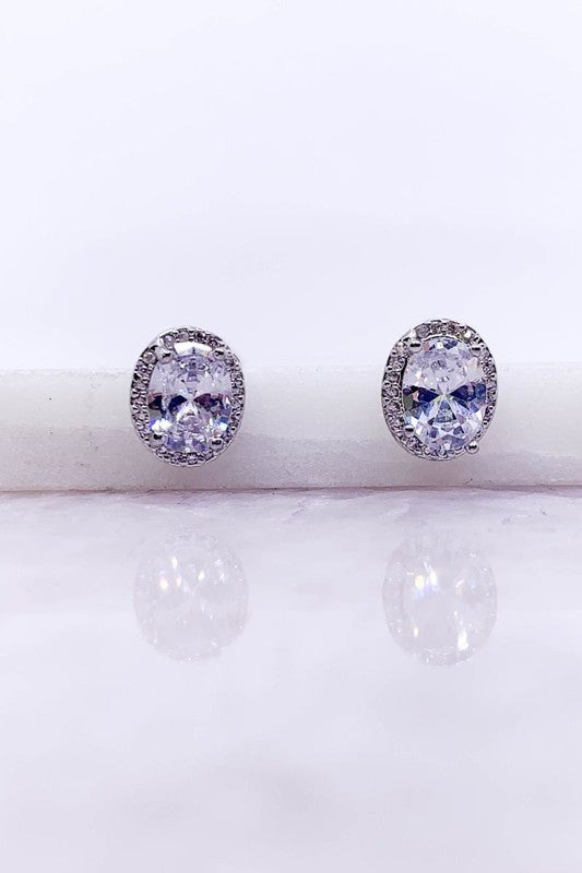 Pronged CZ Cubic Zirconia Oval Post Earrings Rhodium and 14 K Gold Plated