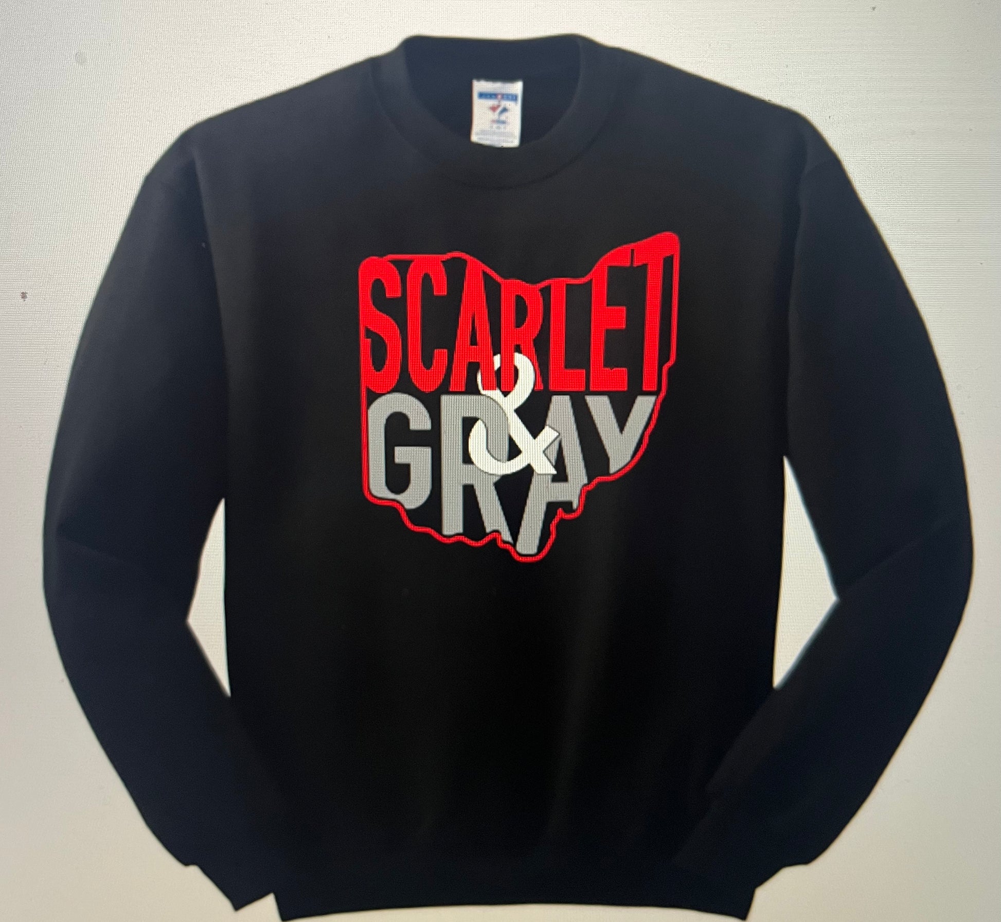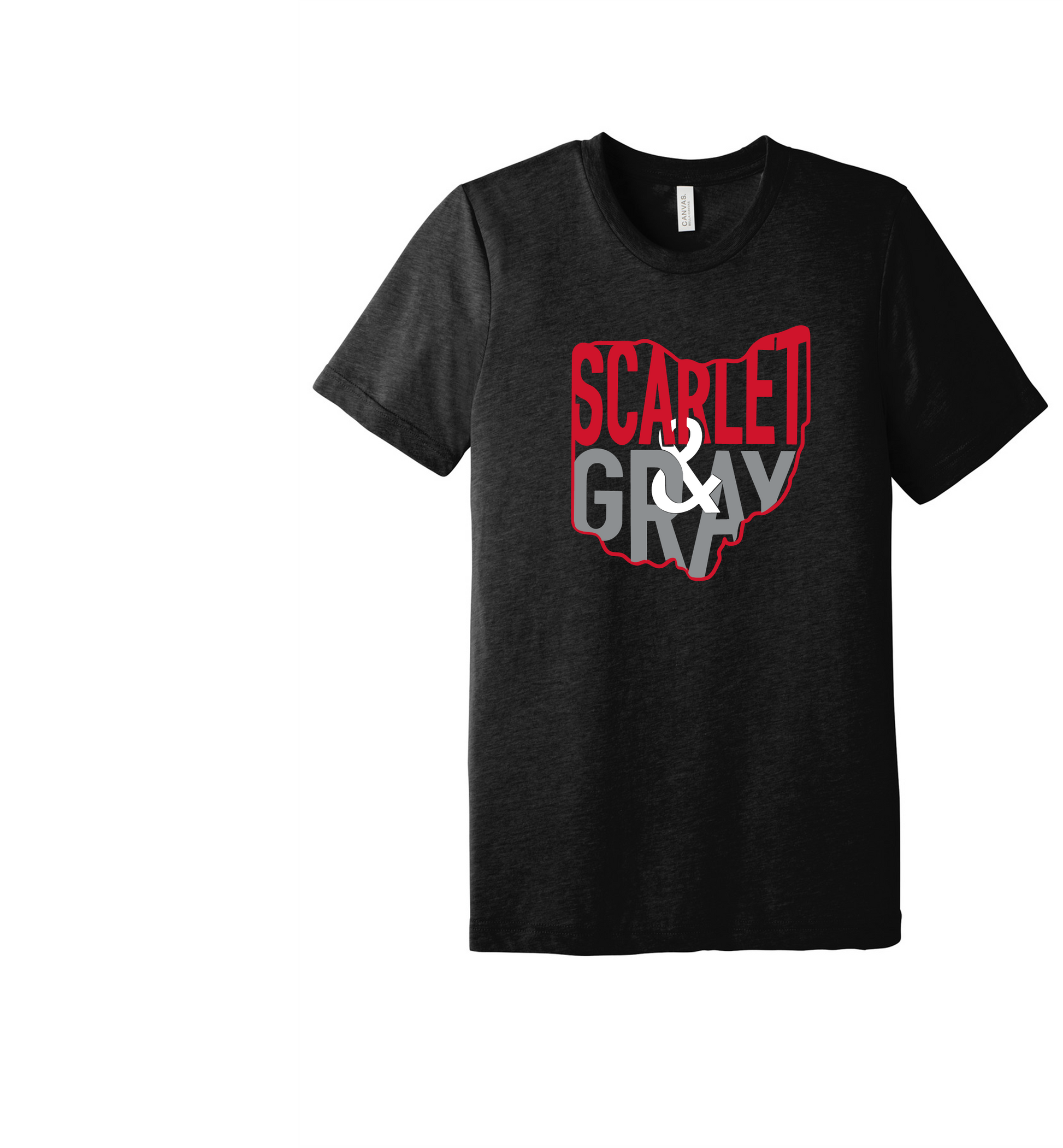 Updated design, available in a variety of apparel options, printed in red, white, and gray ink.