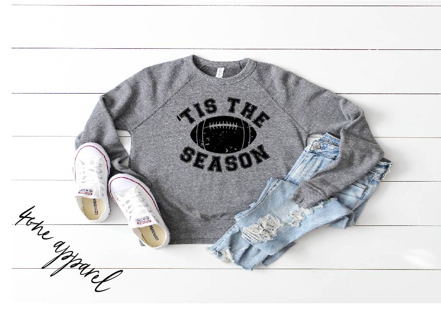 Who is ready for football season?!?!?! Super cozy tri blend tees and sweatshirt, professionally screen printed in black ink.